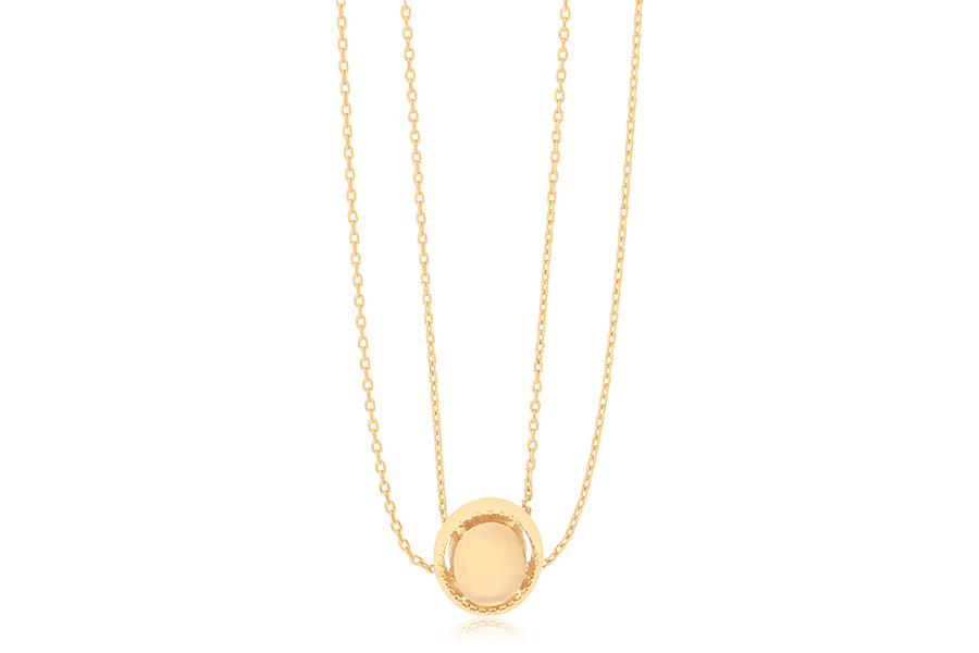 GARGANTILHA BANHADA EM OURO, PONTO DE LUZ 4mm E OLHO GREGO 12mm DIÂMETRO, ELO VENEZIANA DUPLA 0,80mm