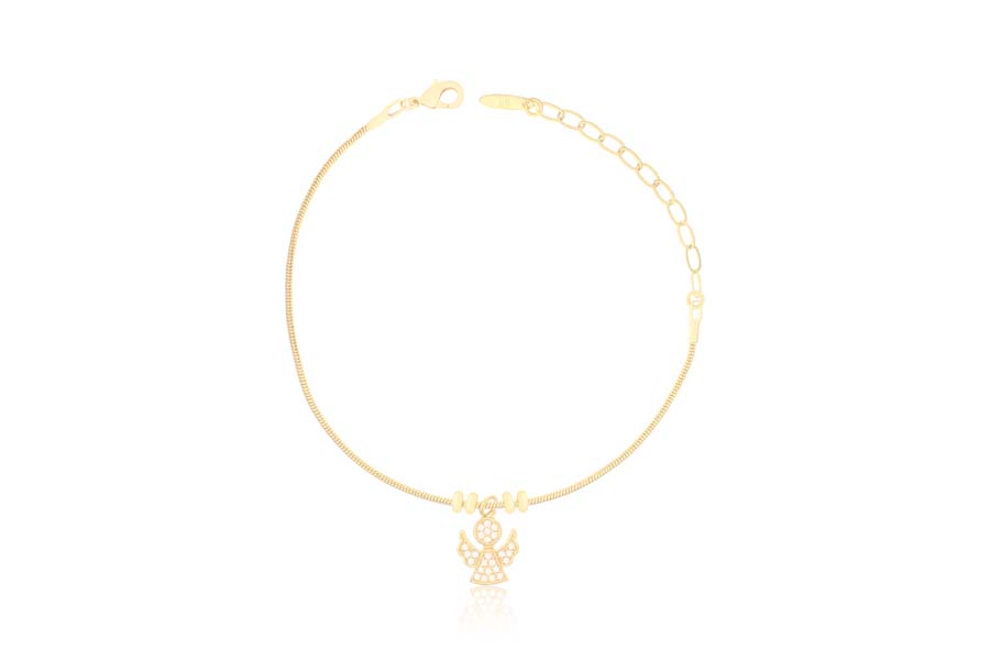 PULSEIRA BANHADA EM OURO, ELO PORTUGUÊS 2,50mm, 16cm COMPRIMENTO, PONTO DE LUZ 4,50mm E PINGENTE FÉ 11mm DIÂMETRO