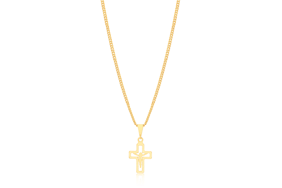 GARGANTILHA BANHADA EM OURO, VENEZIANA 0,80mm, 40cm COMPRIMENTO E CRUZ 47X31mm