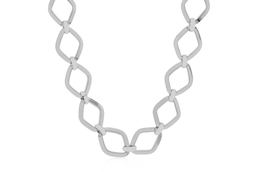 GARGANTILHA BANHADA EM RÓDIO BRANCO, ELO 9mm LARGURA, 43cm COMPRIMENTO E PESO 32,10g
