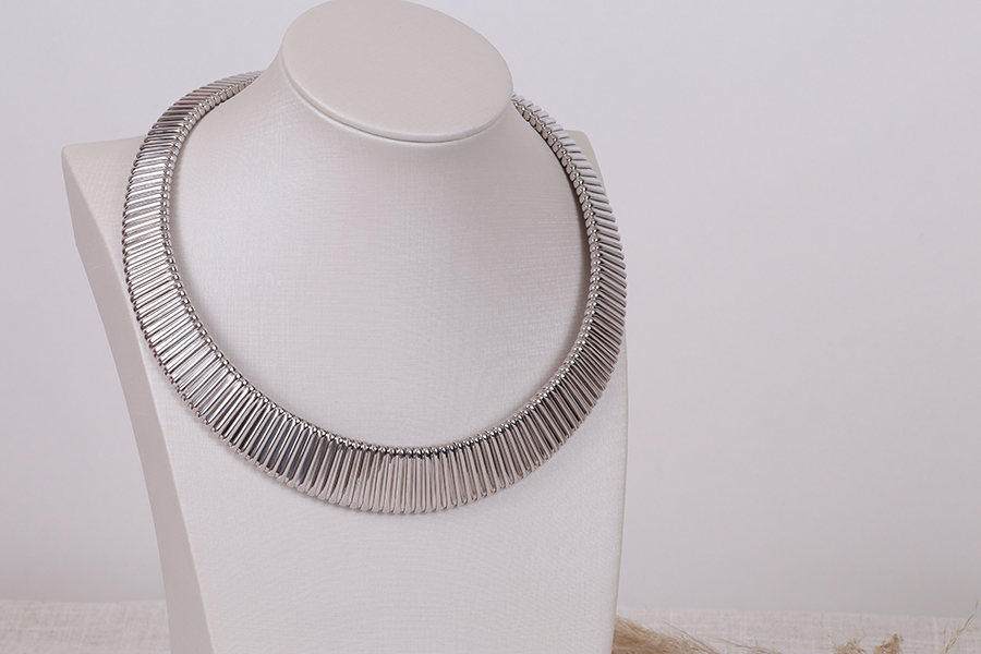 CHOKER BANHADA EM RÓDIO BRANCO, ELO VENEZIANA 0,80mm, 37cm COMPRIMENTO, EXTENSOR 10cm COMPRIMENTO E 6 CORAÇÕES 6mm ALTURA