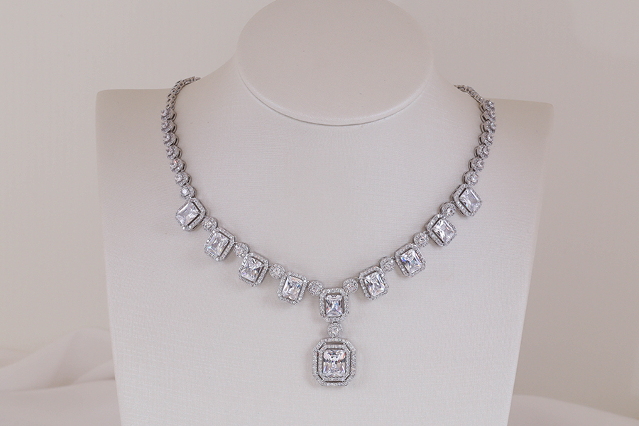 GARGANTILHA BANHADA EM RÓDIO BRANCO, GRAVATA, ELO PORTUGUÊS 3mm DIÂMETRO, PALITO 17mm COMPRIMENTO E CORAÇÃO 13mm LARGURA