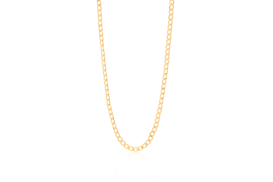 CORRENTE BANHADA EM OURO, ELO CORDA 3mm, 45cm COMPRIMENTO, EXTENSOR 5cm COMPRIMENTO E PESO 12,20g