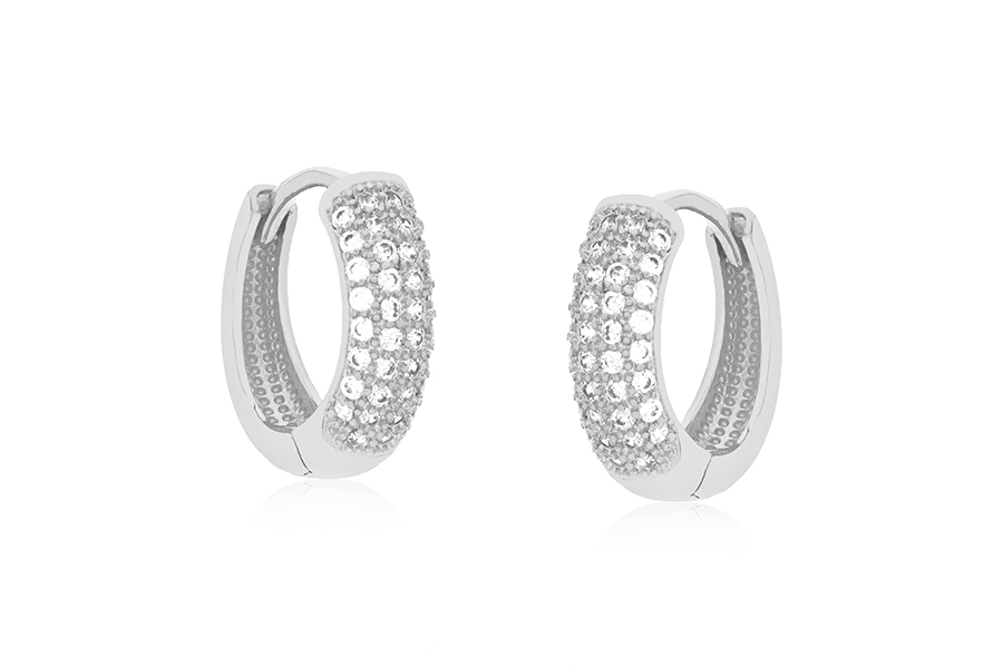 BRINCO BANHADO EM RÓDIO BRANCO, ARGOLA 18mm DIÂMETRO E 18mm LARGURA COM ZIRCÔNIAS NAS LATERAIS