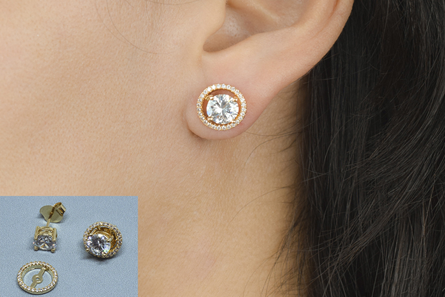 BRINCO BANHADO EM OURO, PONTO DE LUZ 2mm COM TARRAXA BABY