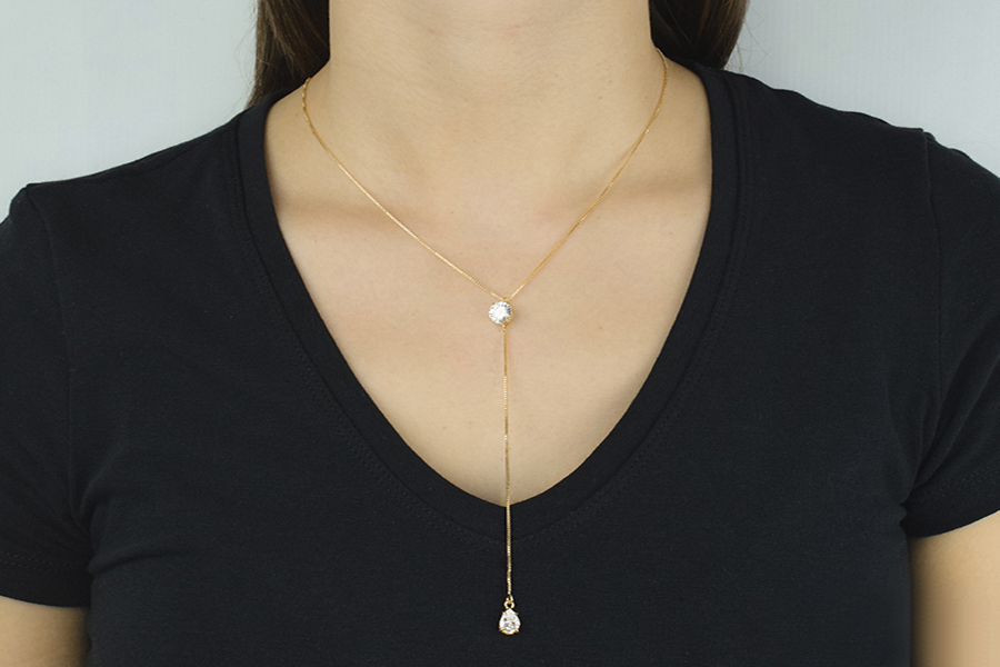 GARGANTILHA BANHADA EM OURO, CRISTAL REDONDO 14mm DIÂMETRO, ELO PORTUGUÊS 7mm DIÂMETRO, 1,90mm ESPESSURA E 37cm COMPRIMENTO