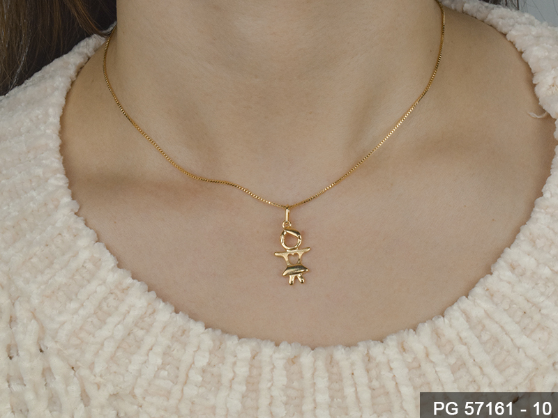 PINGENTE BANHADO EM OURO, MENINA, COM 5 ZIRCONIAS E 16mm ALTURA