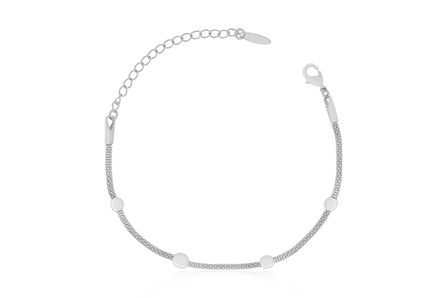PULSEIRA BANHADA EM RÓDIO BRANCO, INFANTIL, DUPLA, ELO OVAL 0,80mm, 14cm COMPRIMENTO, EXTENSOR 5cm COMPRIMENTO E PONTO DE LUZ 3mm