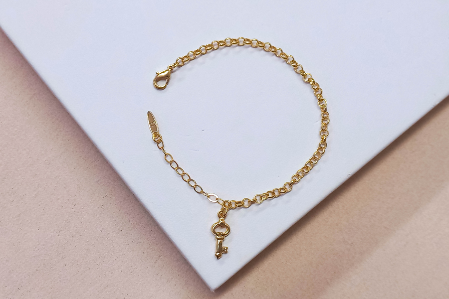 PULSEIRA INFANTIL BANHADA EM OURO, VENEZIANA LONGA 1,50mm ESPESSURA E CHAPINHA COM MENINO 24mm COMPRIMENTO