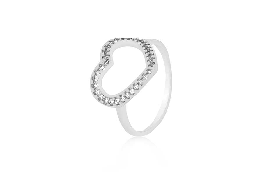 ANEL EM PRATA, CORAÇÃO, COM BANHO DE RÓDIO BRANCO