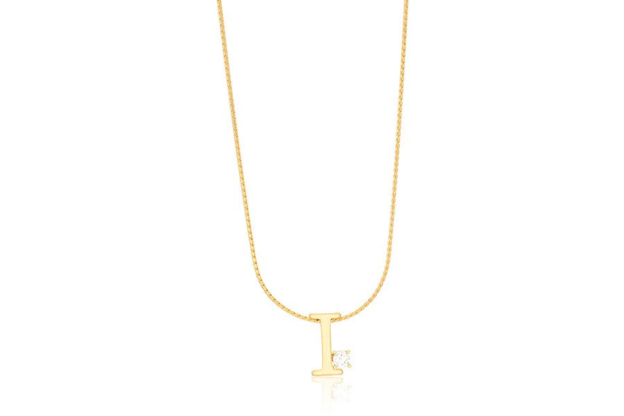 GARGANTILHA BANHADA EM OURO, ELO 0,70mm, 40cm COMPRIMENTO, EXTENSOR 10cm COMPRIMENTO, LETRA Q, 11mm ALTURA E PONTO DE LUZ 3mm