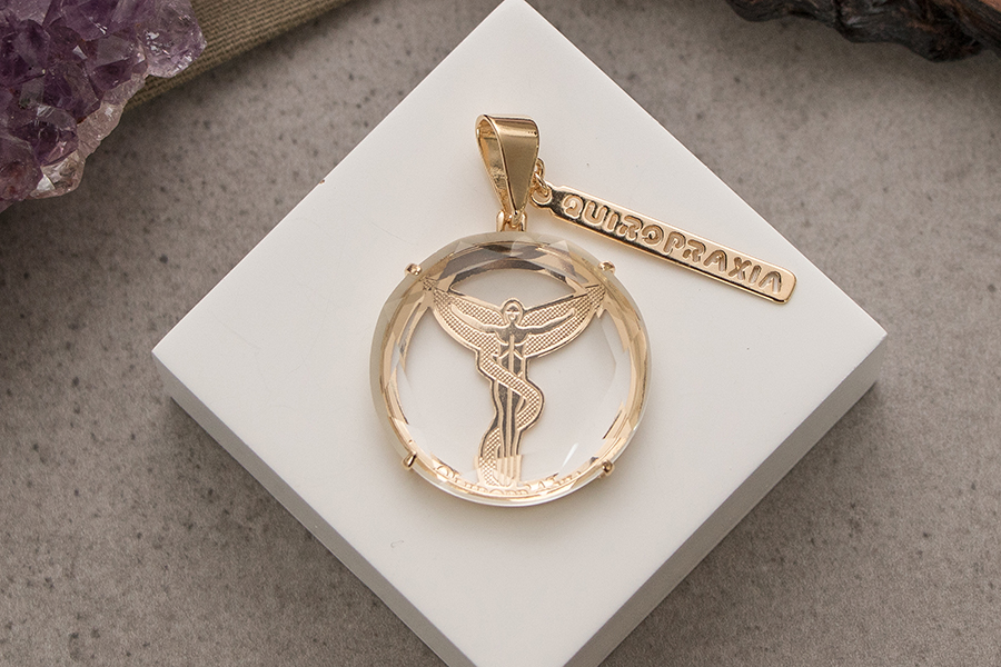 PINGENTE BANHADO EM OURO CRISTAL 16mm DIÂMETRO, BONECOS