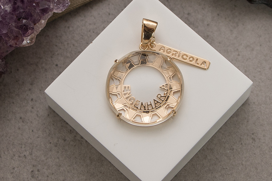PINGENTE BANHADO EM OURO CRISTAL REDONDO 20mm DIÂMETRO, AMOR