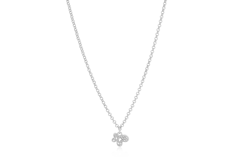 GARGANTILHA BANHADA EM PRATA LEVE, ELO 0,70mm, 40cm COMPRIMENTO, LETRA 11mm ALTURA E PONTO DE LUZ 3mm