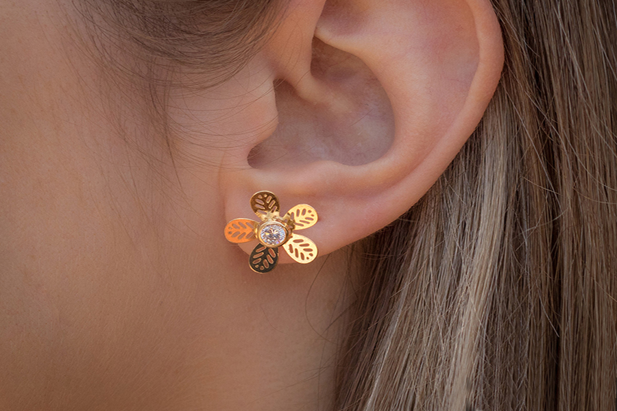 BRINCO EM PRATA, FLOR 3mm DIÂMETRO