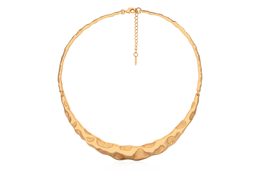 CHOKER BANHADO EM OURO, ELO 1,50mm, 35cm COMPRIMENTO, EXTENSOR 10cm COMPRIMENTO E PINGENTE OVAL IRREGULAR 8,50mm COMPRIMENTO, LISO OU ACETINADO