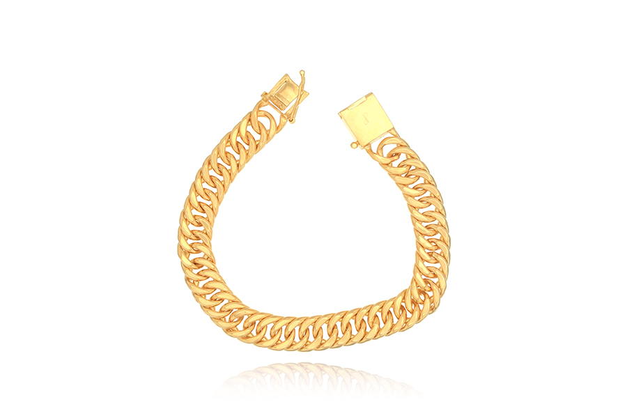 PULSEIRA BANHADA EM OURO, CORRENTE ELO CARTIER 8,50x3,30mm, 19 E 20cm COMPRIMENTO E PESO 3,30g