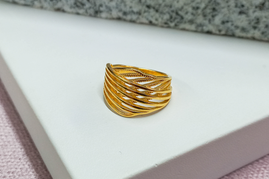 ANEL BANHADO EM OURO, ONDAS FOSCA E LISA, LARGO, 18mm LARGURA