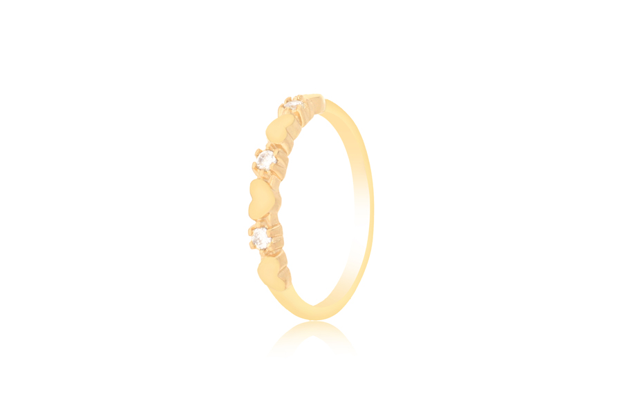 ANEL BANHADO EM OURO, 13mm LARGURA, COM CORAÇÃO CRAVEJADO