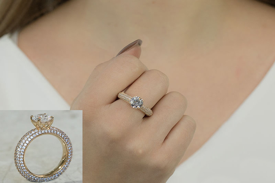 ANEL BANHADO EM RÓDIO BRANCO, REDONDO CRAVEJADO 9mm