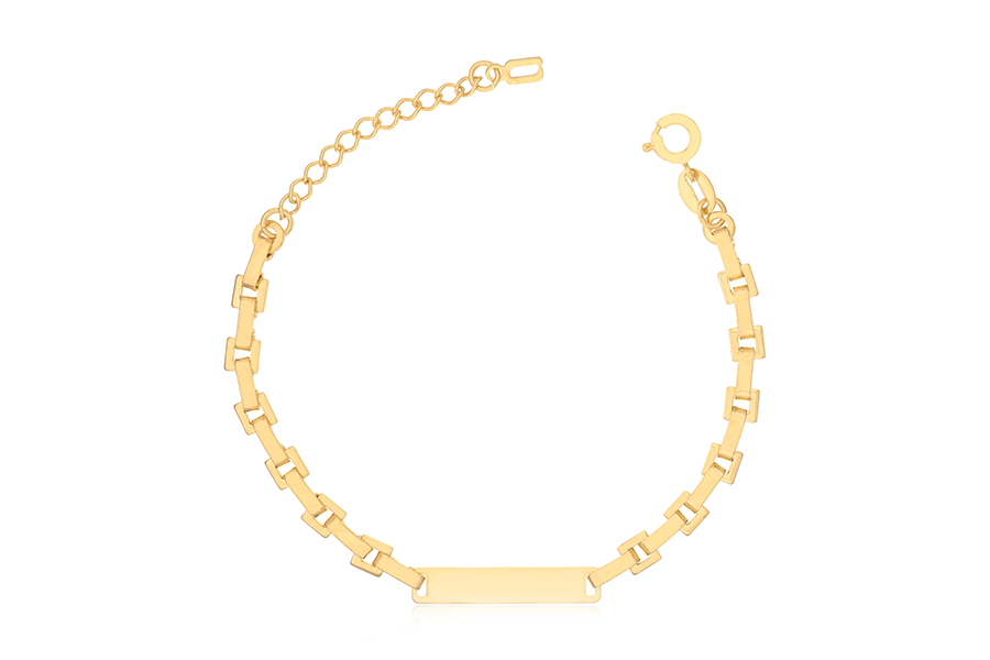 PULSEIRA INFANTIL BANHADA EM OURO, CORRENTE ELO 4mm DE LARGURA, FECHO TRAVA E PESO 3,40g