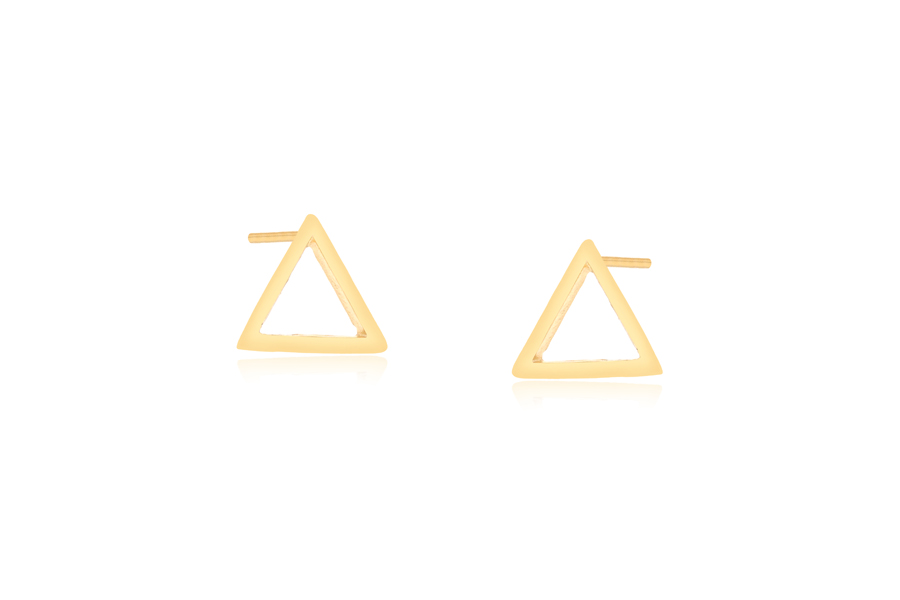 BRINCO BANHADO EM OURO, TRIÂNGULO 17mm ALTURA, 12,50mm LARGURA E ZIRCÔNIA 4,50mm DIÂMETRO, QUALQUER COR
