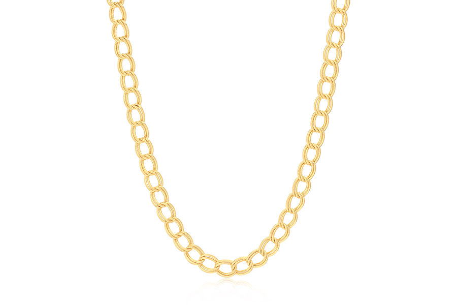 CHOKER BANHADA EM OURO, CORRENTE ELO CARTIER 8,50x3,40mm, 35cm COMPRIMENTO, EXTENSOR 10cm COMPRIMENTO E PESO 6,40g