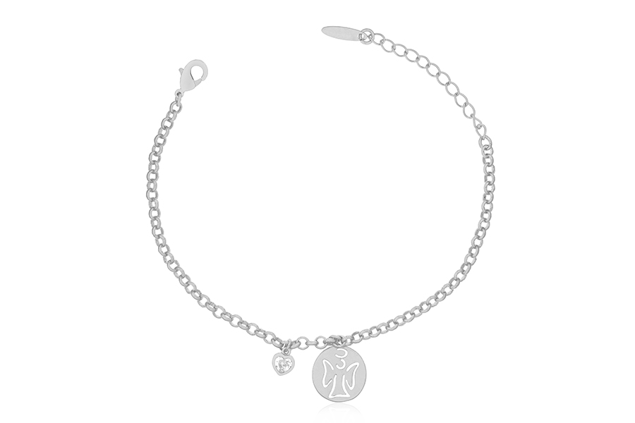 PULSEIRA BANHADA EM RÓDIO BRANCO, INFANTIL, ELO PORTUGUÊS 2,50mm, 14cm COMPRIMENTO, EXTENSOR 3cm COMPRIMENTO E ÁRVORE DA VIDA 17mm DIÂMETRO