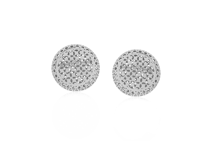 BRINCO EM PRATA, REDONDO 9mm DIÂMETRO, COM BANHO DE RÓDIO BRANCO, COLEÇÃO AURA