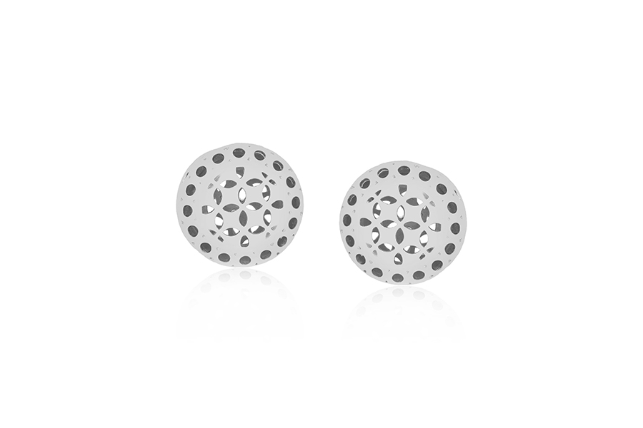 BRINCO EM PRATA, MEIA ESFERA CRAVEJADA, 9,90mm DIÂMETRO