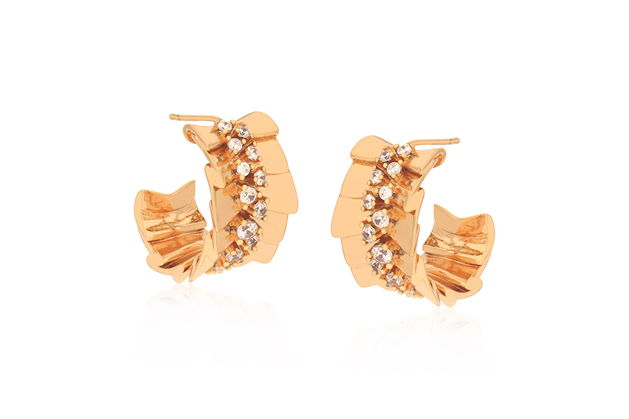 BRINCO BANHADO EM OURO, ARGOLA COM BAGUETES E ZIRCÔNIAS CRAVEJADAS