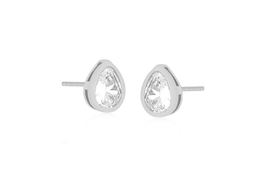 BRINCO EM PRATA, GOTA DE ZIRCÔNIA COM GALERIA EM FILIGRANA, 5,20mm ALTURA