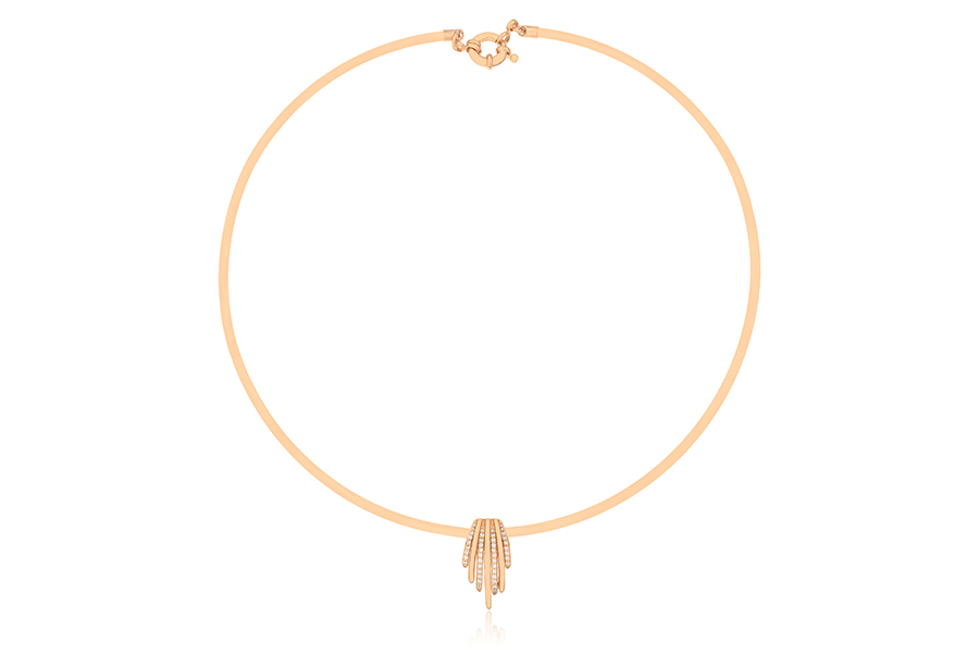 GARGANTILHA BANHADA EM OURO, ARO MEIO LISO E MEIO CRAVEJADO, 12,50cm DIÂMETRO, ARO REDONDO 5mm ESPESSURA