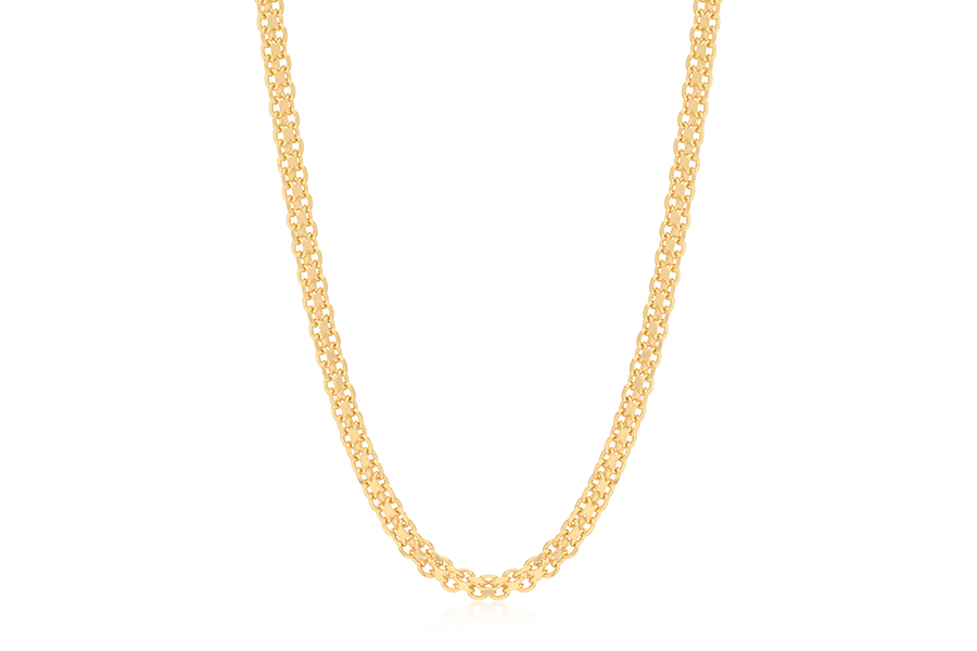 CORRENTE BANHADA EM OURO, ELO CORDA 3mm, 45cm COMPRIMENTO, EXTENSOR 5cm COMPRIMENTO E PESO 12,20g