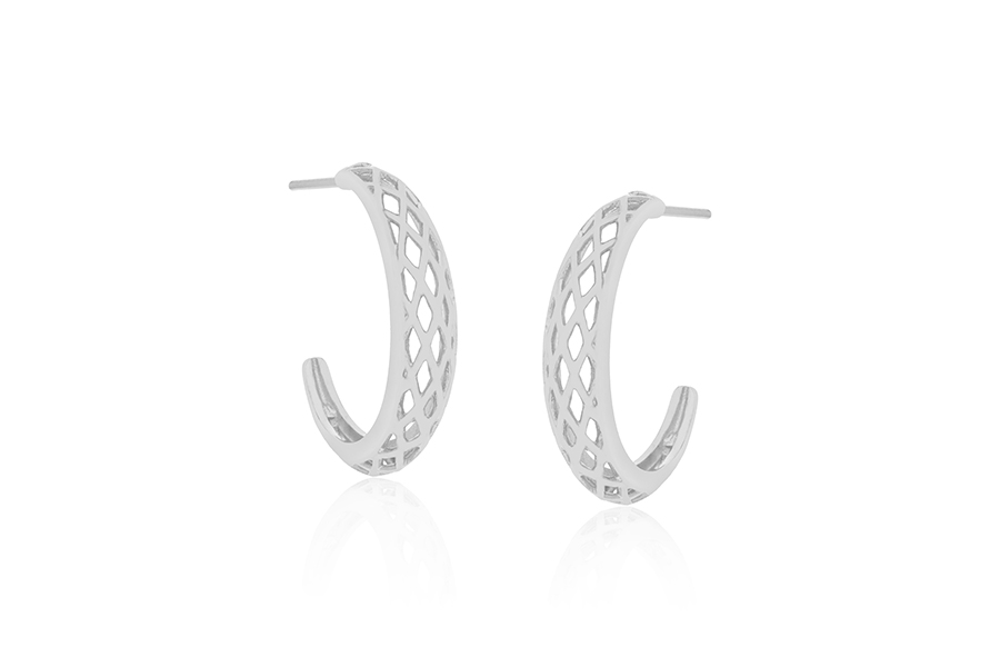 BRINCO BANHADO EM RÓDIO BRANCO, 26mm ALTURA E 10mm LARGURA