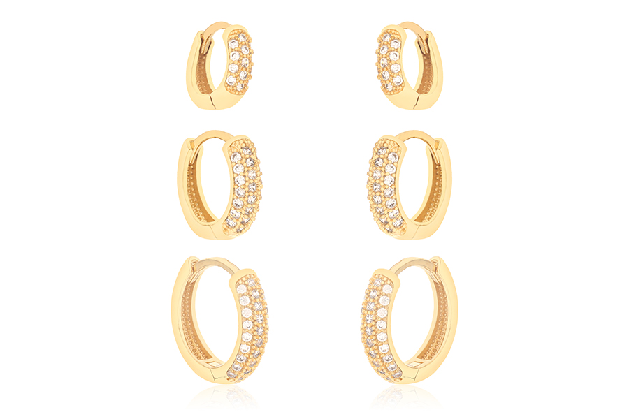 BRINCO BANHADO EM OURO, ZIRCÔNIAS REDONDAS 4mm E 7mm