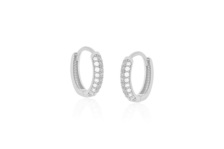 BRINCO EM PRATA, MEIA ARGOLA CRAVEJADA 12mm ALTURA E 1,30mm ESPESSURA