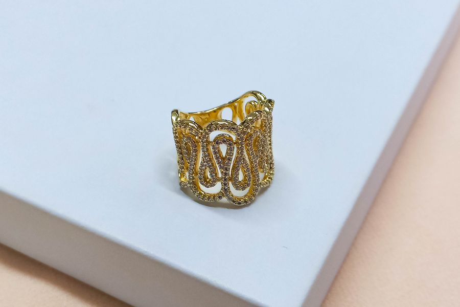 ANEL BANHADO EM OURO, VAZADO, 18mm LARGURA