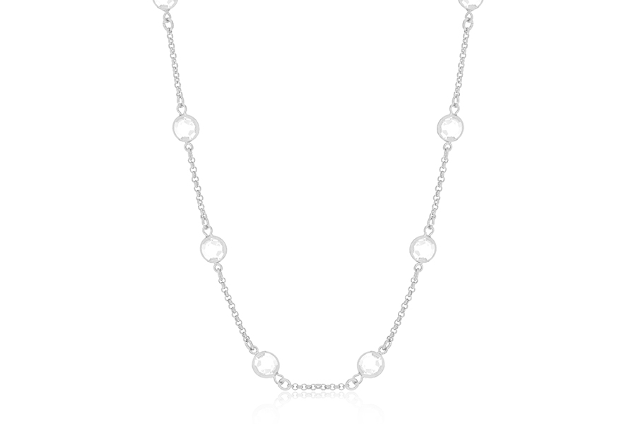 CORRENTE EM PRATA, ELO ESFERAS DIAMANTADAS, DUPLO, 2,90mm LARGURA E 1,40mm ESPESSURA, 38+5cm COMPRIMENTO
