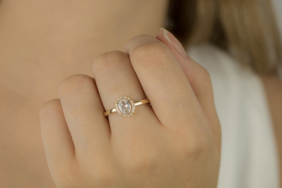 ANEL BANHADO EM OURO, COM ZIRCÔNIAS