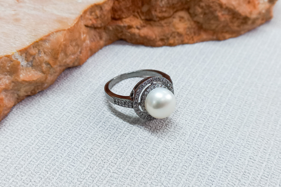ANEL BANHADO EM RÓDIO BRANCO, SOLITÁRIO 9mm, LINHA TRADICIONAL