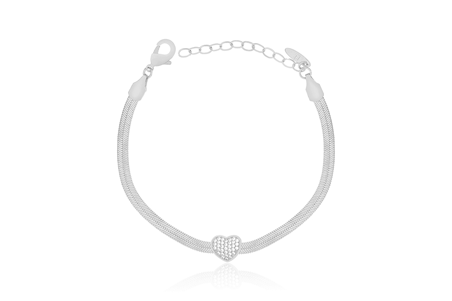 PULSEIRA BANHADA EM PRATA LEVE, DUPLA, ELO 1,50mm ESPESSURA, PONTO DE LUZ 5mm E CORAÇÃO VAZADO 15,50mm LARGURA COM PATA