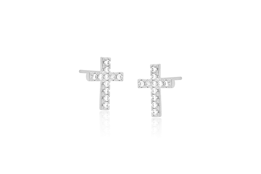 BRINCO BANHADO EM RÓDIO BRANCO, PONTO DE LUZ 4mm, CRAVAÇÃO INGLESA