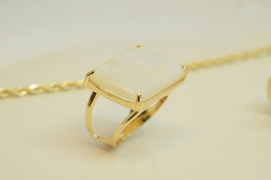 ANEL BANHADO EM OURO COM PÉROLA SHELL 4mm