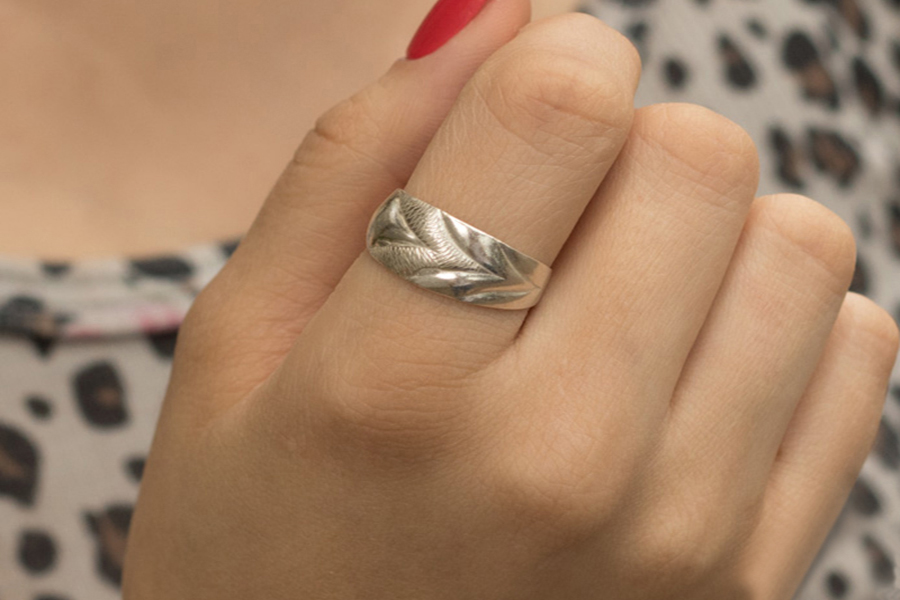 ANEL EM PRATA, FALANGE, 2 FOLHAS