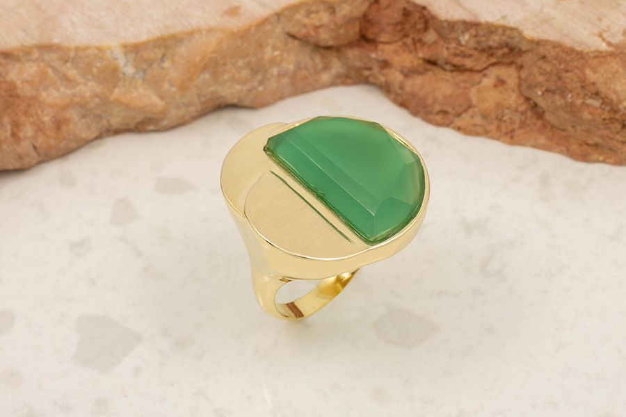 ANEL BANHADO EM OURO, CRISTAL REDONDO 19mm
