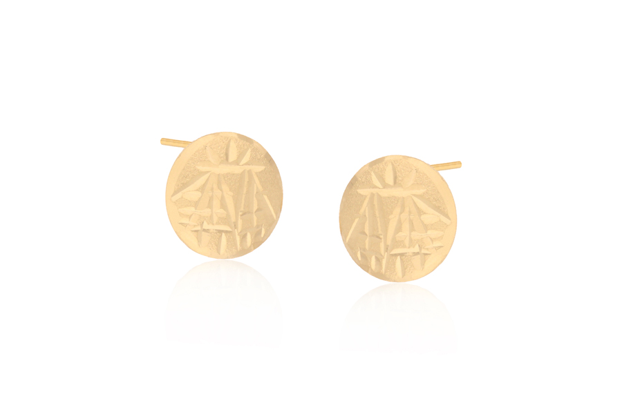 BRINCO BANHADO EM OURO, BASE REDONDA 13,50mm, PENDENTE REDONDO 38mm, COLEÇÃO FILIGRAN