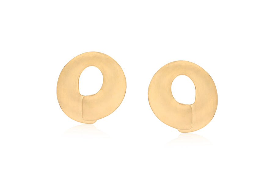 BRINCO BANHADO EM OURO, GOTA IRREGULAR VAZADA 34mm ALTURA, LISO OU ACETINADO