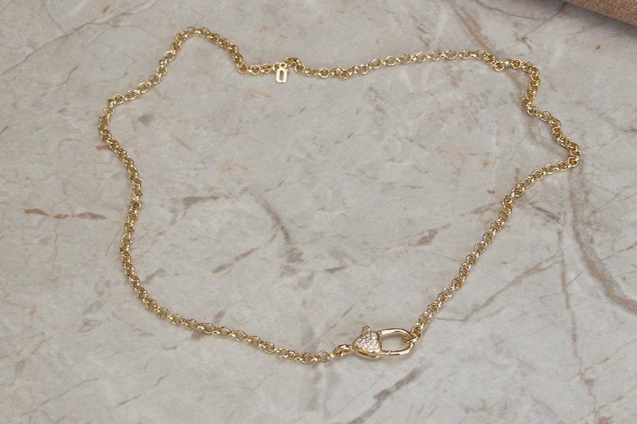CHOKER BANHADA EM OURO, CORRENTE ELO 2,50mm LARGURA, 35cm COMPRIMENTO, EXTENSOR 10cm COMPRIMENTO E PESO 6,80g