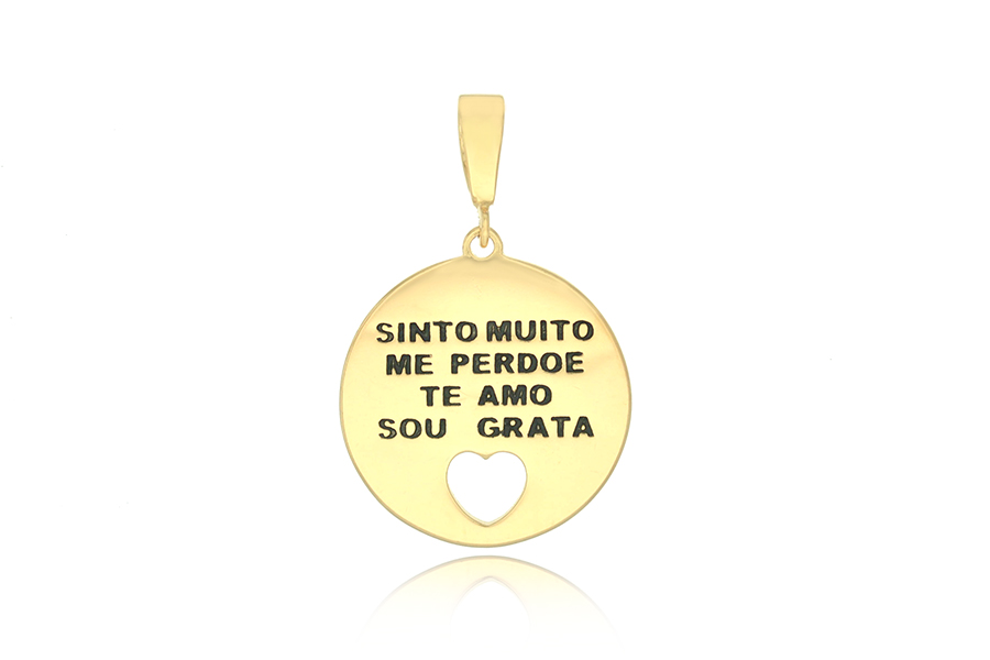 PINGENTE BANHADO EM OURO 26mm DIÂMETRO, SINTO MUITO, ME PERDOE, TE AMO, SOU GRATA